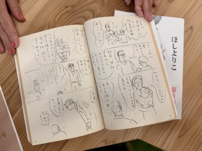 また、下画像のようなラフスケッチのように描かれた漫画形式なので、とても読みやすく、手に取った人が気軽に物語の世界に入り込めるのも魅力のひとつです。冨山さんは「訪れた人にはぜひ読んでみてほしい」と語っていました。